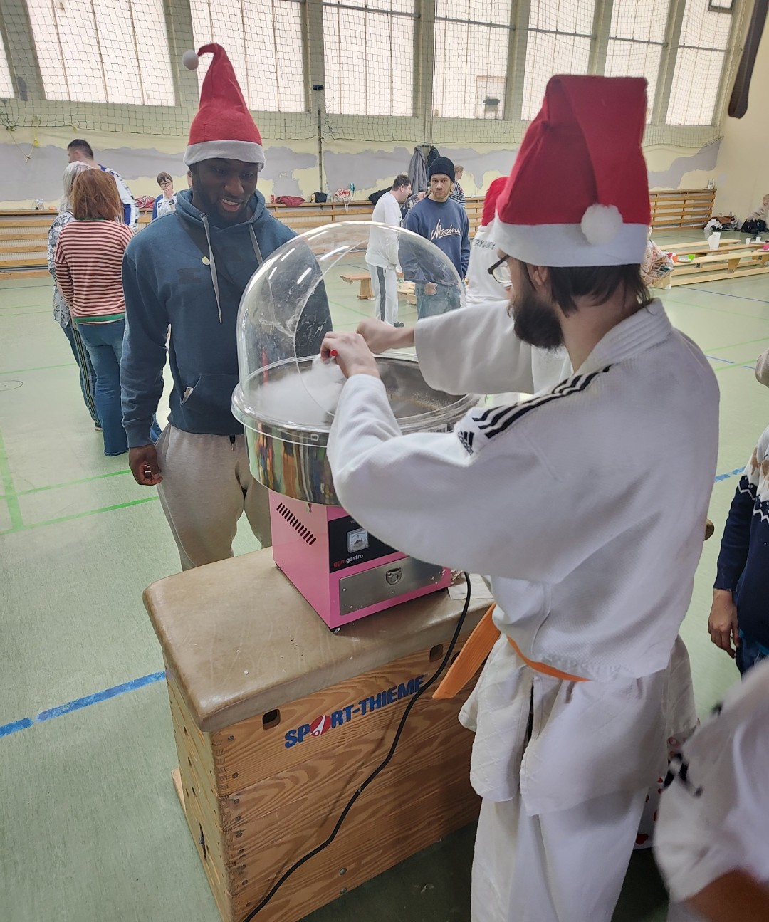Dazu gab es viele Köstlichkeiten aus aller Welt, Zuckerwatte durfte auch nicht fehlen, zusammengetragen und aufgebaut von den Eltern der Judoka.
